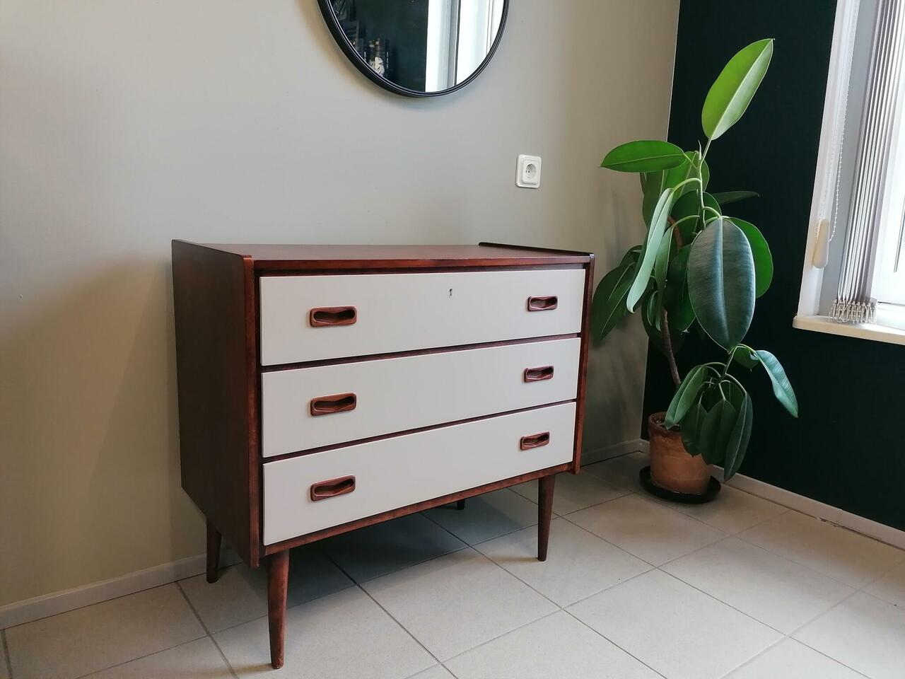 Puitosa peitsitud ja lakitud, sahtlid värvitud.