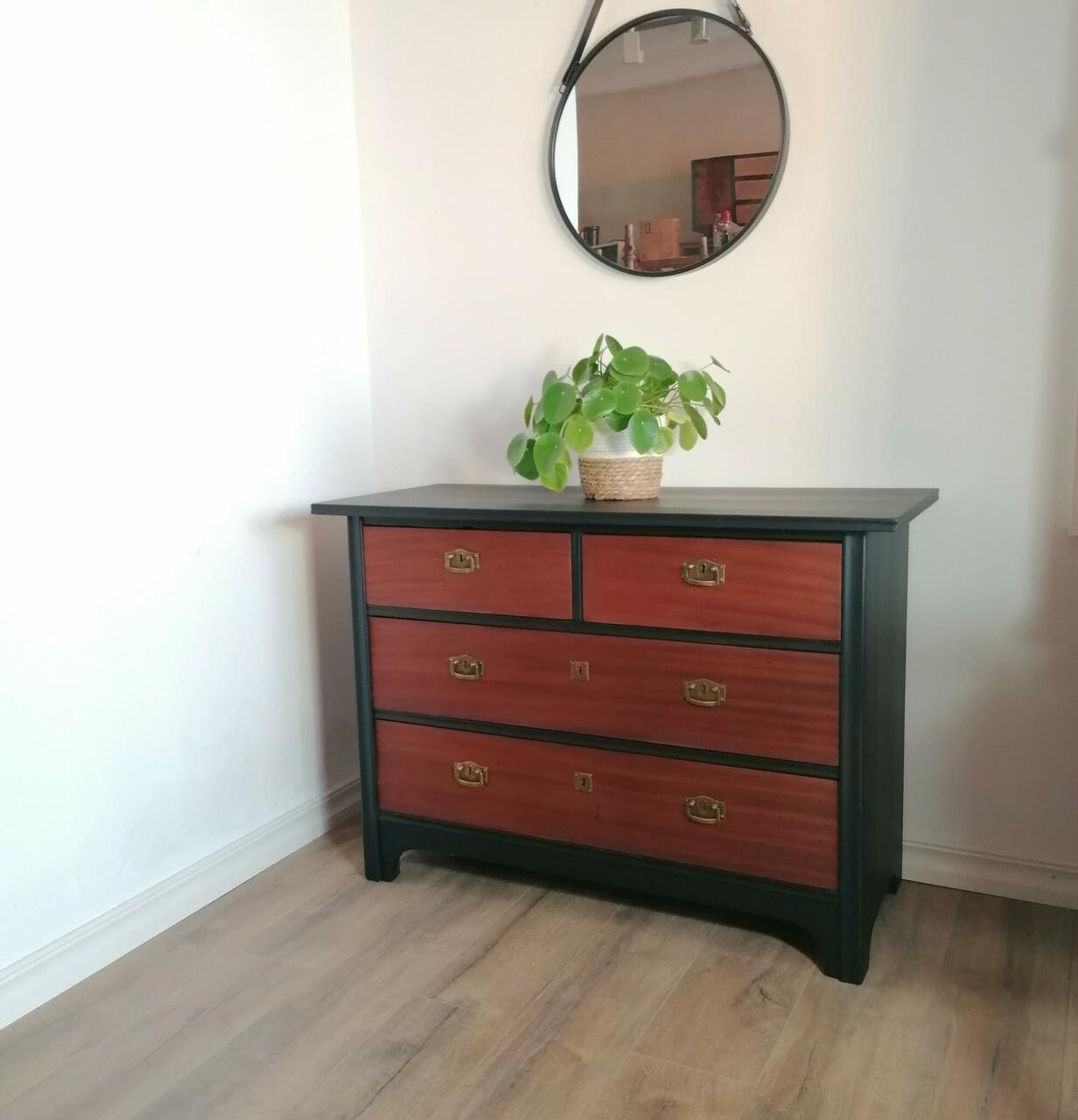 Antiikne Rootsi täispuidust kummut, sahtlitel mahagonispoon. Originaalkäepidemed, värske viimistlus. Sahtlid tugevad ja puhtad. Esineb vanusele vastavat kulumist.