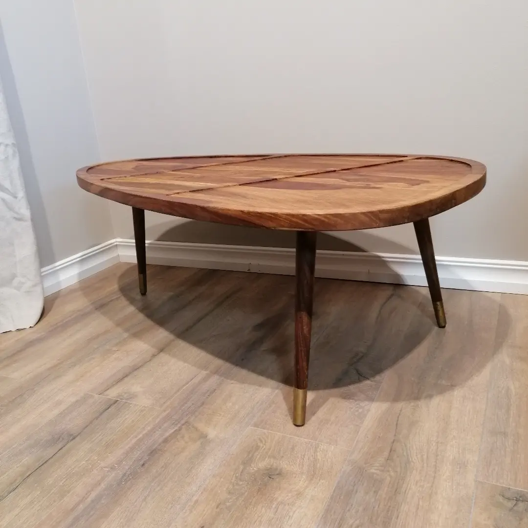 Roosipuust diivanilaud, raske ja stabiilne.