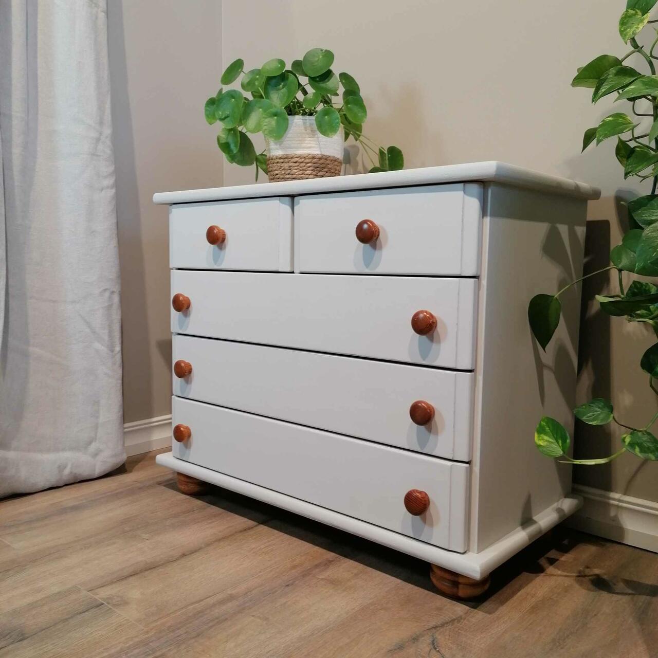 Uue viimistluse saanud mööblikilbist kummut.
