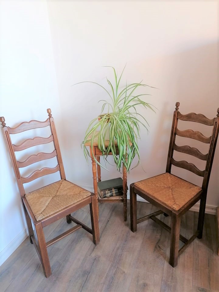 Väga korralikud, vähekasutatud toolid. Konstruktsioon tugev, stabiilne, istmeosa samuti korras. Laius taga 37, ees 47cm. Seljatoe kõrgus 106, istmekõrgus 46cm.