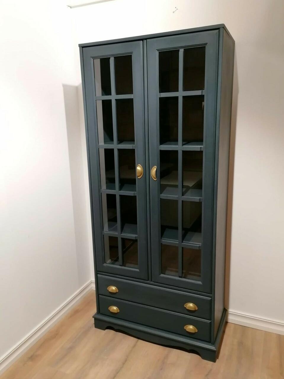 Kriidivärvitud ja vahatatud tumesinine kapp.